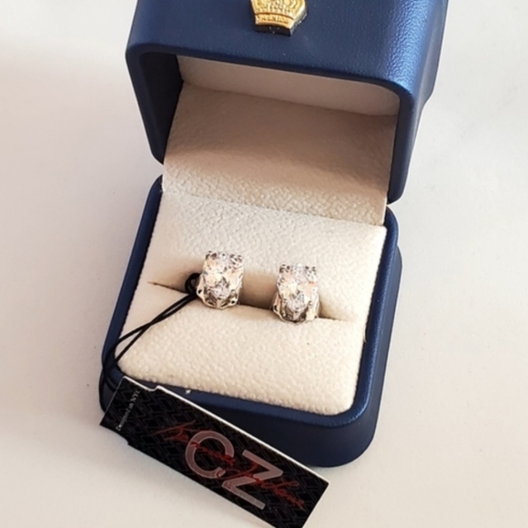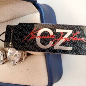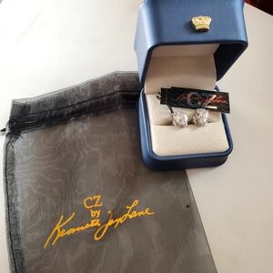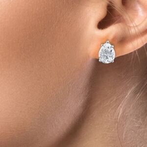 Elegant silver Pear Cut CZ Post earrings by CZ by Kenneth Jay Lane. Signed.