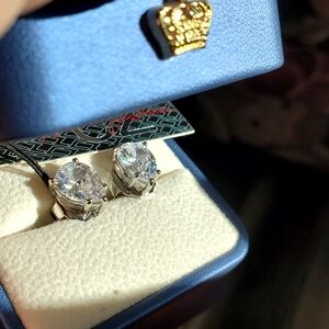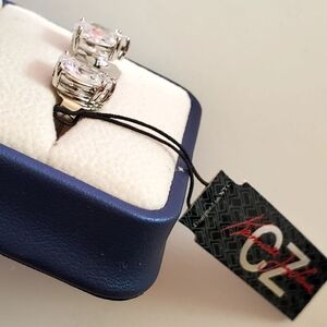 CZ by Kenneth Jay Lane 4 CCTW Pear Cut Silver Post Earrings New With Tag. Signed