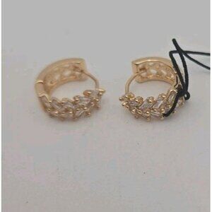 CZ by Kenneth Jay Lane Small Gold Hoop Leaf Earrings Hinge NWT Hoops