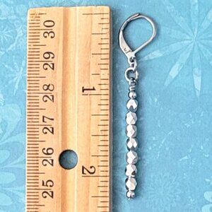 Gorgeous, metallic silver, Fire-polish Czech faceted glass, stainless steel lever back earrings.