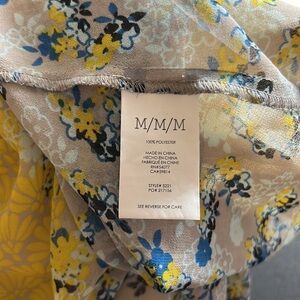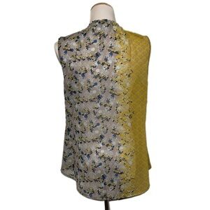 CaBi Offsides floral Blouse Yellow Blue, Button Up, Sleeveless, Sheer
