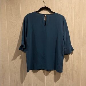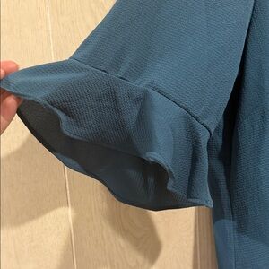 This elegant blue women's top features stylish ruffled sleeves, perfect for any occasion. Its classic design offers both comfort and sophistication.