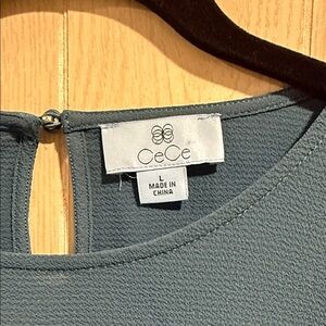 CaCe Elegant Blue Women's Blouse, Flowy Sleeves, Keyhole Back— L
