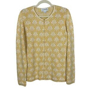 Caamano 100% Cotton Hand Knit Sweater Cardigan Cottagecore Yellow Size Large