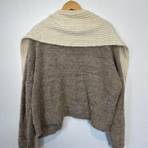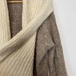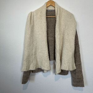 Caamano Brown Beige Alpaca Knit Open Front Shawl Cardigan Sweater Women's One Size