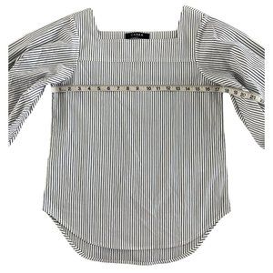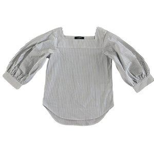 Caara Blue and White Striped Balloon Sleeve Square Neck Top Small NWOT $90