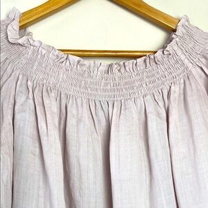 Caara Off-Shoulder Linen Dress with White Lace Appliqué Trim Pale Pink Size S