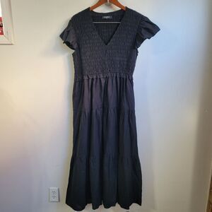 Caara Phoebe Tiered Linen Blend Midi Dress Size XL