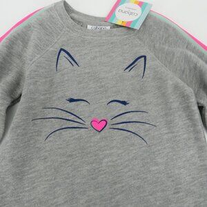 Cabana Cat Face Toddler Girls Sweatshirt Pink Blue Striped Sleeves 2T NWT $32