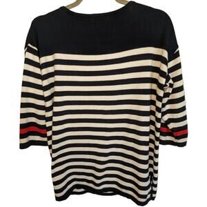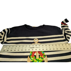 Cabana Cay Small S Black White Stripe Anchor Wreath Holiday Sweater 3/4 Sleeve