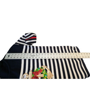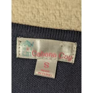 Celebrate the holiday season in nautical style with this Cabana Cay sweater in size S. This black and white striped cotton sweater features a festive anchor adorned with a holiday wreath and bow. The 3/4 length sleeves and classic design make it a cozy and charming choice for any casual holiday gathering. Made from 100% cotton, this sweater is soft, comfortable, and perfect for spreading holiday cheer.