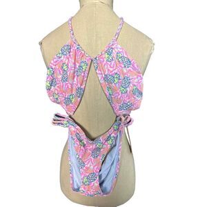 Cabana Del Sol Pint Print 2 Piece Bikini Size Small. Open braided sides. Braided tie at neck.