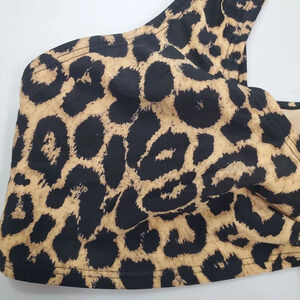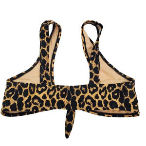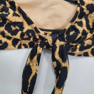 Cabana Del Sol Women's Brown Black Cheetah Print Knot Front Plunge Bikini Top L