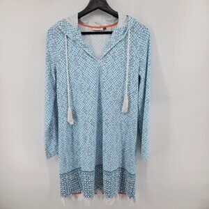 Cabana Life Blue Patterned Hooded Cover-Up Size Medium