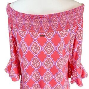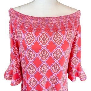 Cabana Life Coral Geo Off Shoulder SPF Dress XS