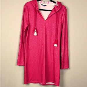 Cabana Life "Coral Tide" Pink Hooded Tunic Cover Up UPF 50 Women's Size …