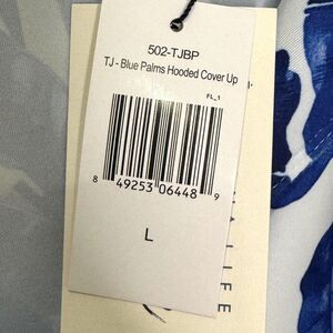 Cabana Life Cover Up Womens Large Blue Palm Print Hooded UPF 50+ Long Sleeve