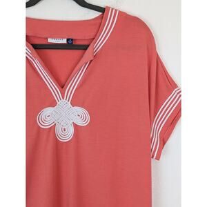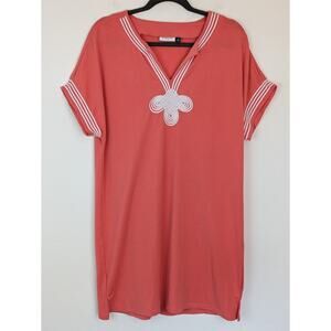 Cabana Life Dress Coral Tides French Terry Embroidery Preppy Coastal Pink Size M