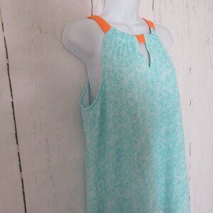 Cabana Life Dress L Large Aqua Orange Surfside Beach Swim Suit Cover Up Pockets