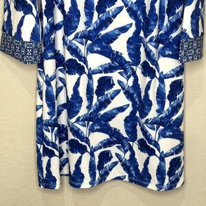 Cabana Life Dress Womens Large Blue White Palm Print Tunic Sun Protection