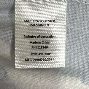 Material: 85% polyester, 15% spandex (shell), exclusive of decoration