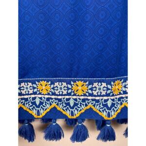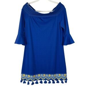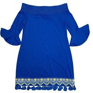 Cabana Life Royal Blues Embroidered Pom-Pom Off-The-Shoulder Dress Size Medium