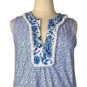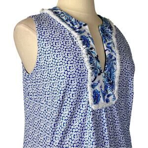 Cabana Life Shirt Dress V-neck Sleeveless Blue White Floral Women’s Plus Size 1X