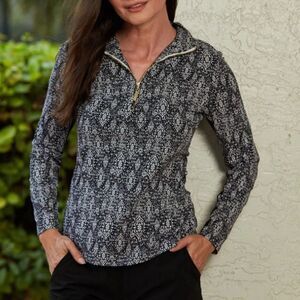 Cabana Life Shirt Womens Size Small Paisley Mesh quarter Zip UPF 50 Golf Tennis