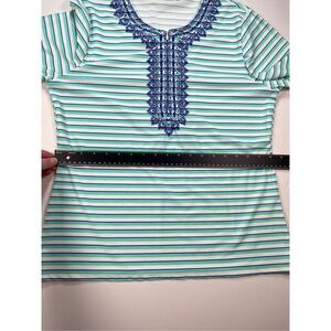 Mint Turquoise, Navy blue and white striped with Gorgeous Navy Blue embroidery