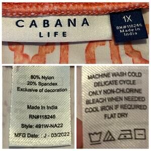 Cabana Life Tunic Dress V-neck Sleeveless Peach White Geo Women’s Plus Size 1X