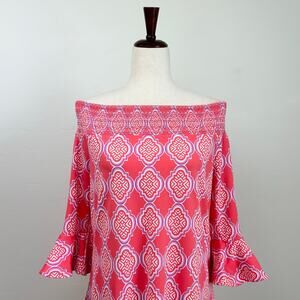 Cabana Life UPF Sun Protection Coral Geo Coverlux Smocked Dress NWT