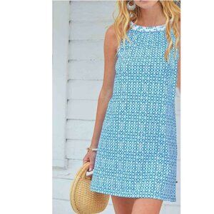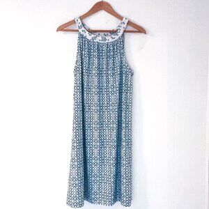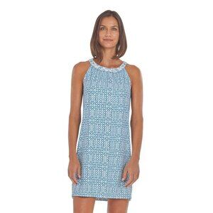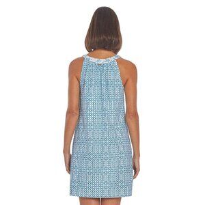 Cabana Life Women's Sleeveless Halter Tank Shift Dress Blue and white