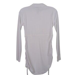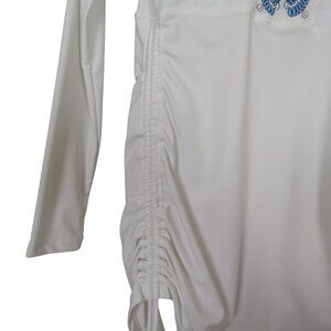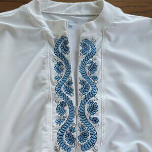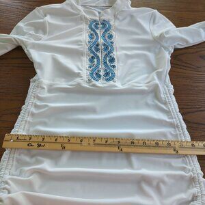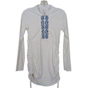 Cabana Life Womens Top sz S White Blue Embroidered convertible ruched rashguard