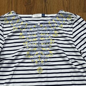 Cabana Life x Talbots Dress Medium Blue White Jersey Cover Up UPF50 Embroidered