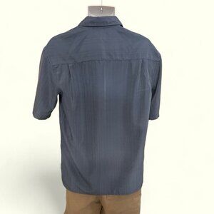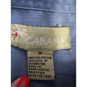 This listing is for one Cabana Mens Resort Button Up Shirt~Size Med~Short Sleeve Hawaiian Wear Vacation that is in pre-owned condition. Color is a blue/gray and shirt looks new - excellent condition! 100% Polyester. Machine wash.