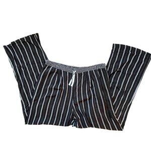 Cabana Pants Black with White Stripes Wide Leg Lightweight and Flowy Pockets L