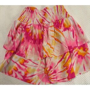 Keywords: Cabana by Crown & Ivy, tiered skirt, smocked waist, tie dye, ruffle skirt, pink skirt, orange skirt, summer skirt, casual skirt, boho skirt, festival skirt, womens skirt, size small, mini skirt