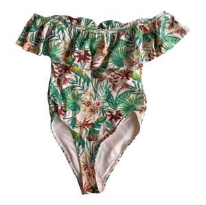 Cabana del Sol Off the Shoulder Palm Floral Print One Piece Swimsuit Size Small