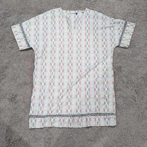 Cabana life Women's Tunic swim cover up Cream Pink and Blue Size Large