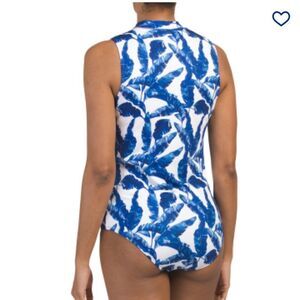 Cabana Life Printed One-Piece Women's UPF 50+ Zip Neck Sleeveless Rashguard Swimsuit Size Small