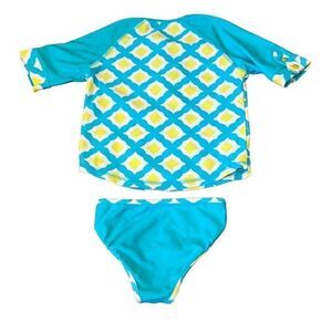 Cabana Life EUC Blue Yellow Two Piece Rash guard Sz 4T