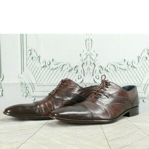 Cabani Brown Leather Lace Up Cap Toe Oxford Dress Shoes Size Eu 44 US 10.5