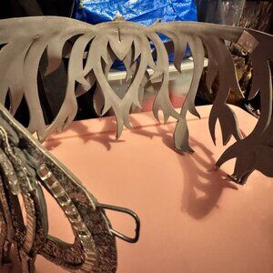 Selling this original Charismatico 5-piece costume, perfect for cabaret, burlesque, drag events! I have performed in this 3 times. The silver texture is mirrored pieces. The back of all pieces is covered with felt for comfort. I've added extra rhinestones on the headdress and backpack. There may be some small mirror pieces missing but its so minor, it's not noticeable. This is NOT a Halloween store costume, as Charismatico makes costumes for professional dancers, drag artists, and cabaret performers. Just check out their website. This costume is substantial. Not cheaply made. If you are looking for an one-off Halloween costume thats $50, this is not for you.