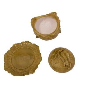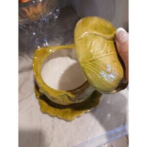 Cabbage Lettuce Turain Serving Bowl Lid Dish Platter Green Ceramic Cottage Farm