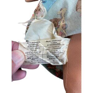 This Vintage Cabbage Patch Kids doll features adorable brown yarn hair and a delightful blue outfit adorned with teddy bear illustrations. The doll is a charming collectible suitable for enthusiasts and collectors. Its unique design and nostalgic flair make it a standout addition to any collection, offering a piece of cherished childhood memories. Missing pants but no other defects noted. SKU 9195