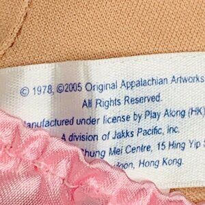 2005 Play Along Cabbage Patch doll. She is 14 in with blonde hair and blue eyes. She is wearing a diaper, bloomers and a velvet dress with wristlet bow. Good condition. Vinyl head and cloth body.