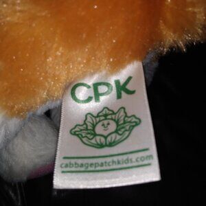 Cabbage Patch Kids Adoptimals plush cat, likely an orange tabby or a similar breed, identifiable by the "Cabbage Patch Kids" logo on its paw.