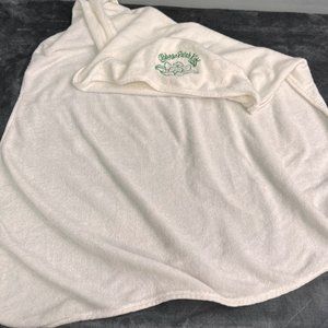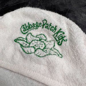 Vintage Cabbage Patch Kids baby doll hooded towel in white. Terrycloth with green embroidery. Good condition. Measures approx 25" x 30".