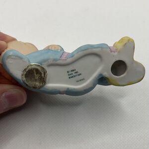 This Cabbage Patch Kids porcelain figurine features a red-haired girl with pigtails, made in 1984. It is from the 1980s era and part of the Cabbage Patch Kids collection. The figurine is unboxed, finished in matte, depicting a girl character in a multicolor design. It is a vintage piece manufactured in Taiwan.