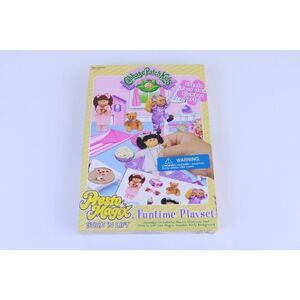 Enter the magical world of Cabbage Patch Kids with this Presto Magix Funtime Playset. This vintage playset includes 15 pieces of stick-ons, reusable mat. The playset features a baby-themed design and measures 13 inches in length and 9 inches in width.